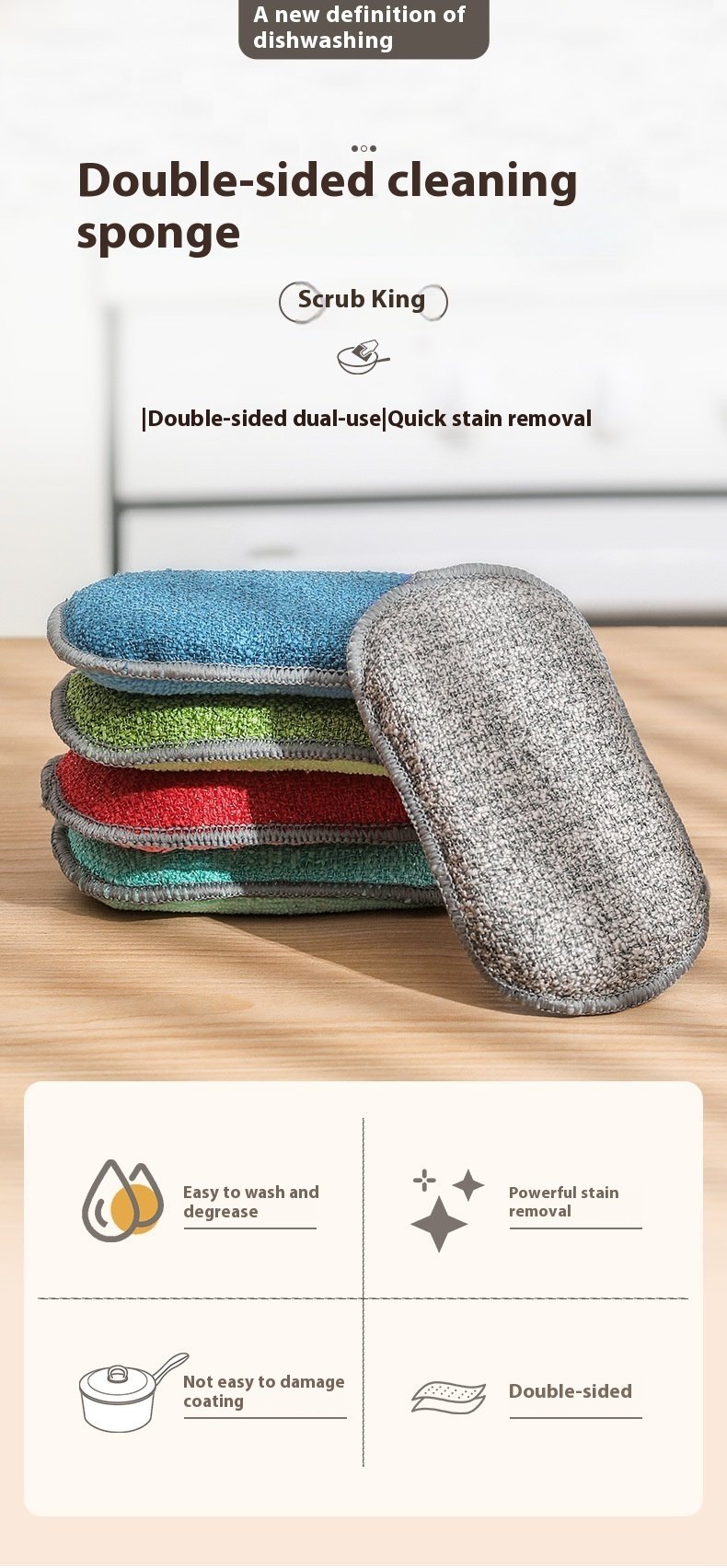 Microfiber Thick Household Kitchen Dishwashing Spong Mop