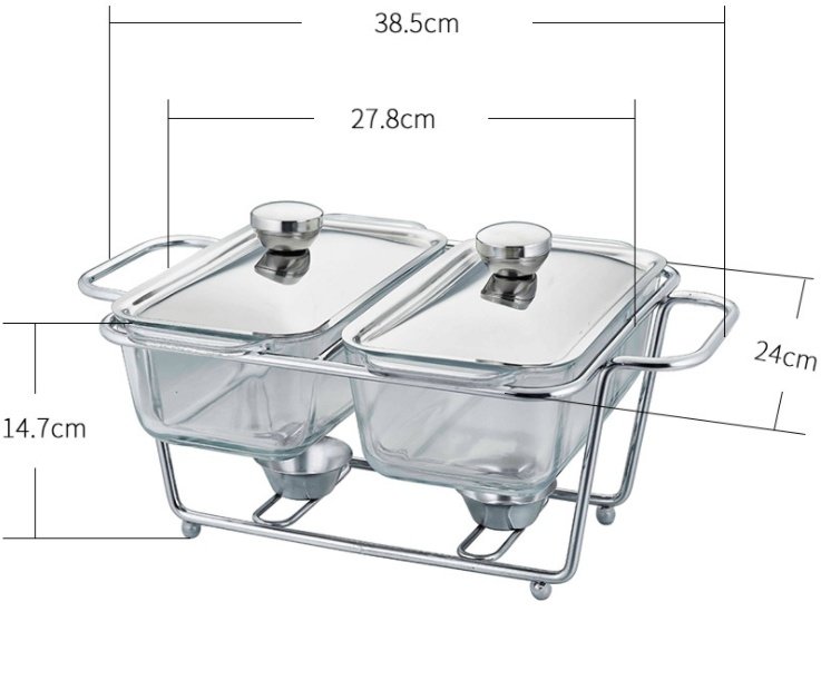 Rectangular Glass Buffet Stove Food Heating Container Hot Pot Alcohol Stove